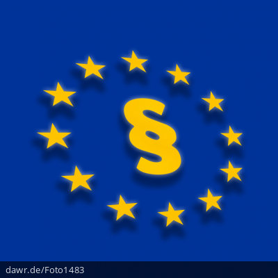 Dieses Bild zeigt auf azurblauem Grund die zwölf goldenen Sterne, wie sie auch in der Europaflagge zu finden sind. Mittig ist ein Paragraphenzeichen zu sehen.