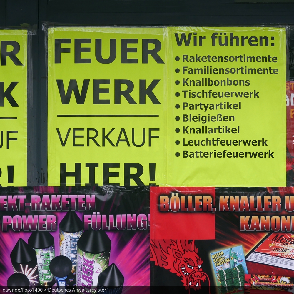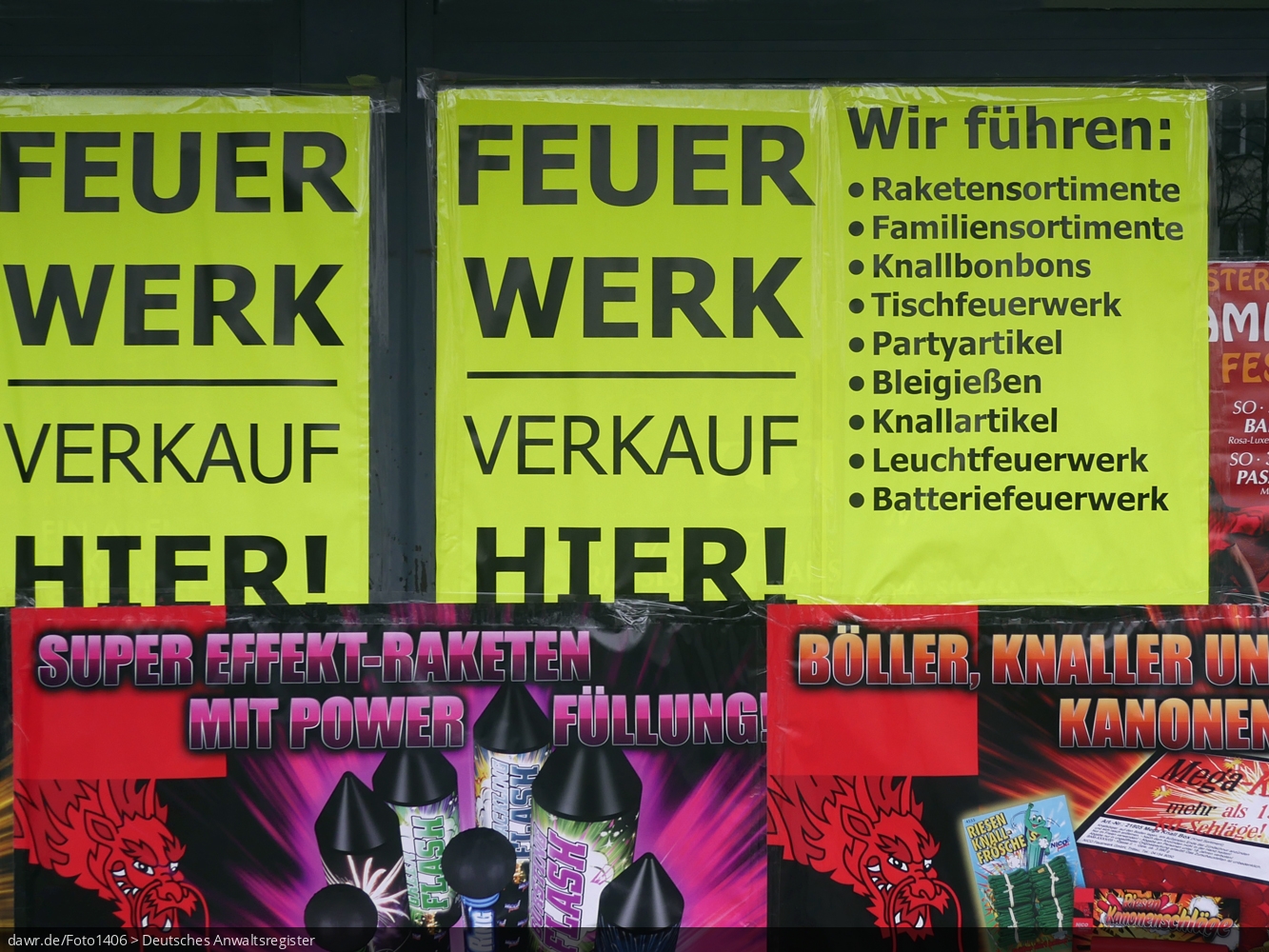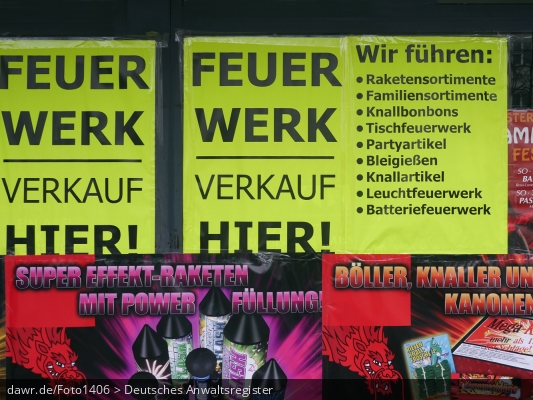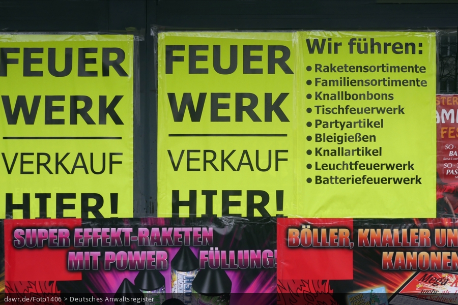 URL dieser Seite: https://www.anwaltsregister.de/Foto/Feuerwerksverkauf.Bild1406
