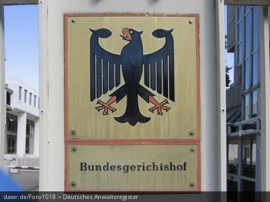 URL dieser Seite: https://www.anwaltsregister.de/Foto/Schild_des_Bundesgerichtshofs_in_Karlsruhe.Bild1018